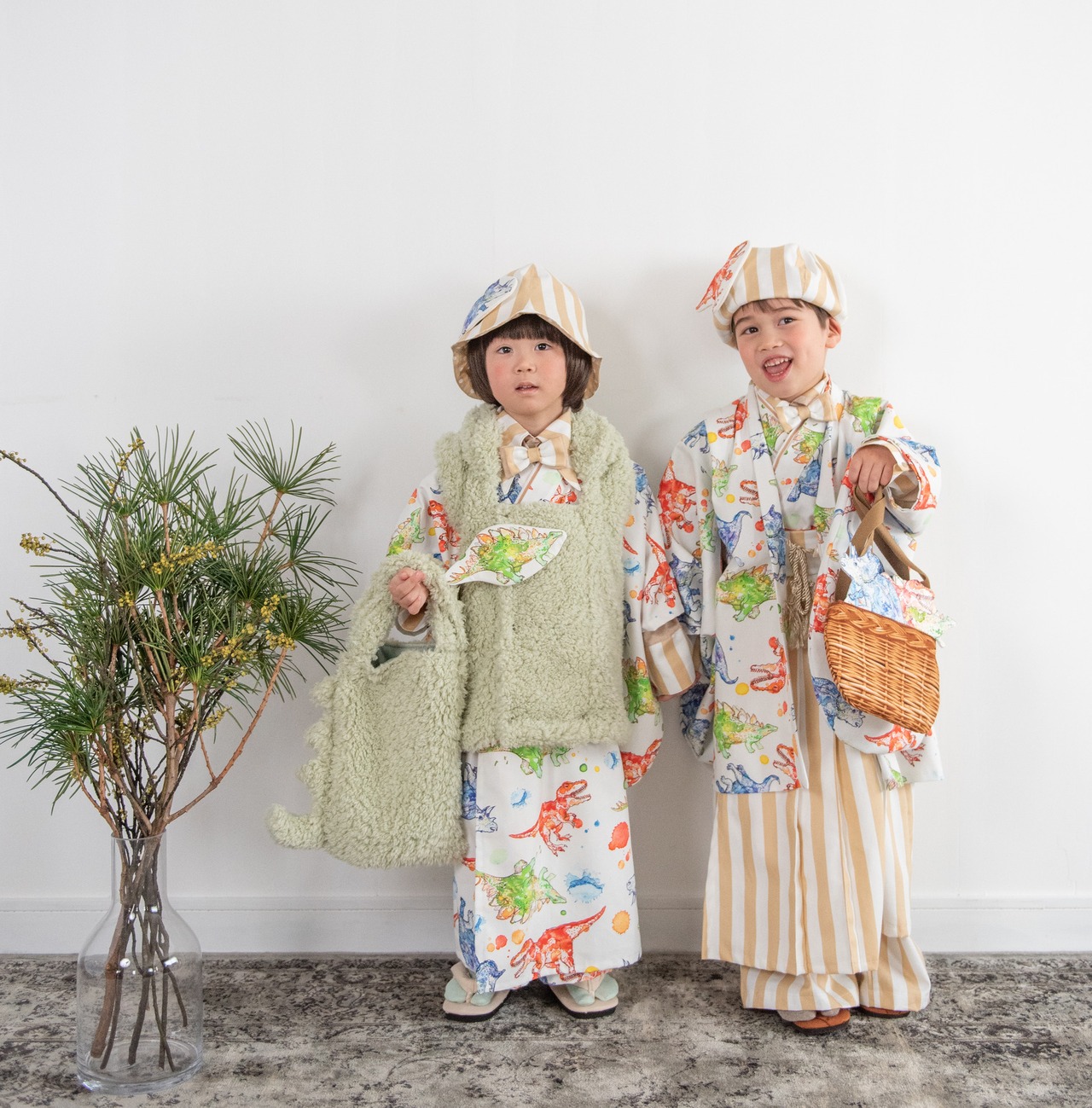 2step着物が成長と共に短くなってもパンツがさりげなく丈を足してくれるので合わせる事で更に長く着てもらえ、同じ生地で仕立てているので違和感なく写真も綺麗に映え、デザイン性もプラスされてお洒落度がより高まります。