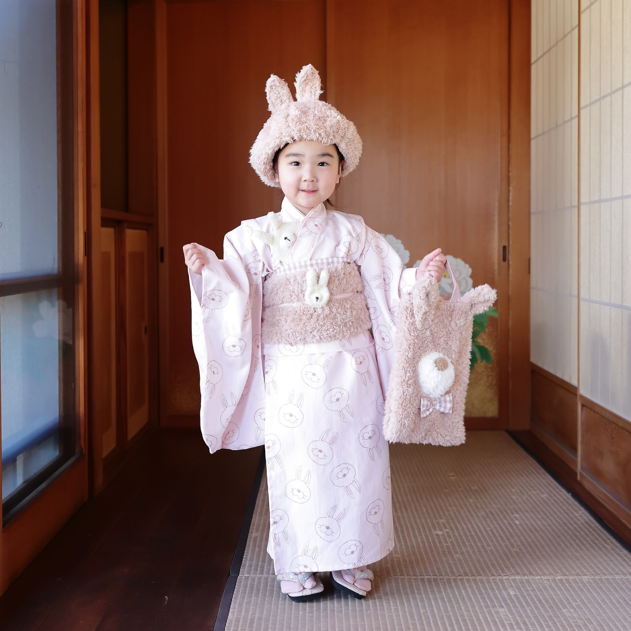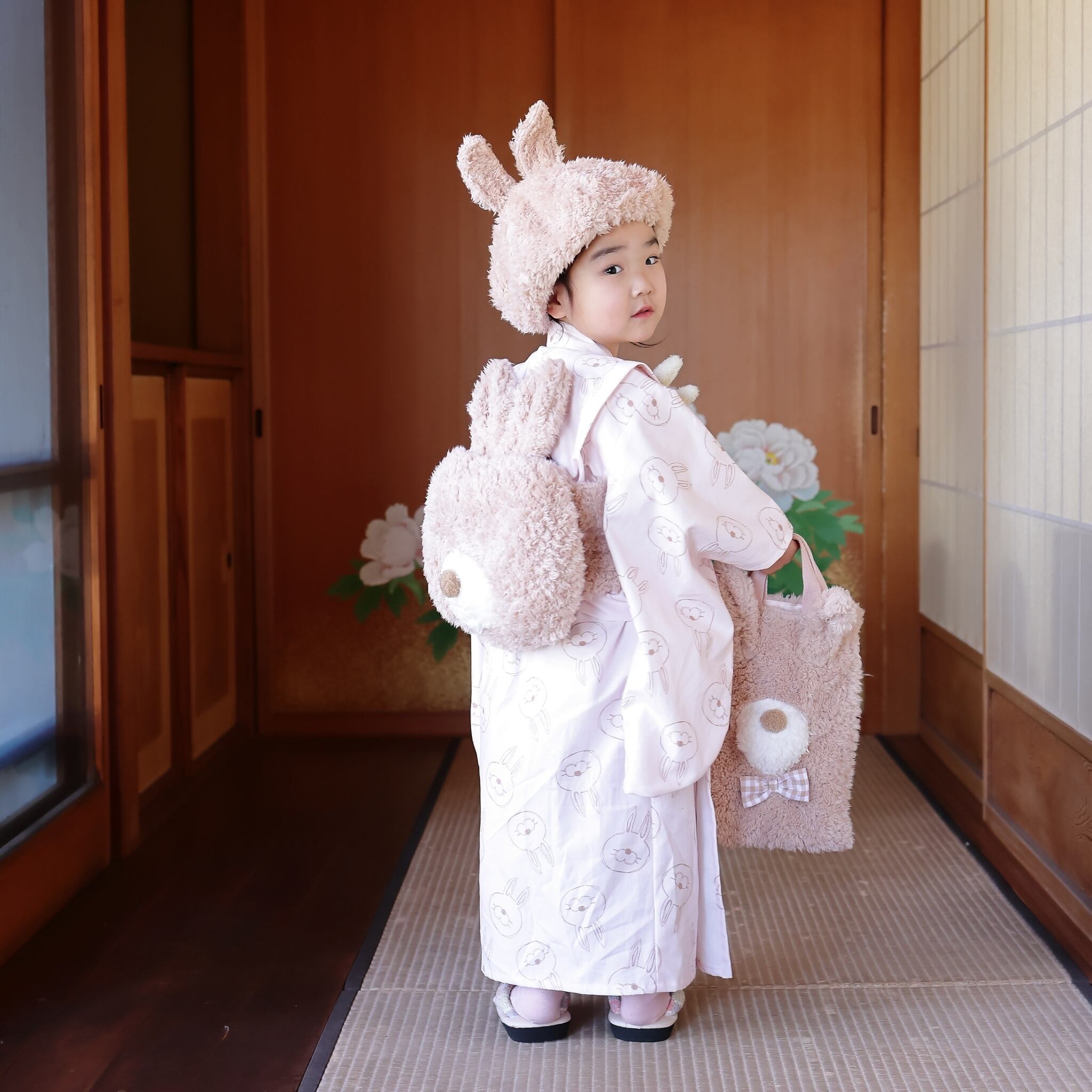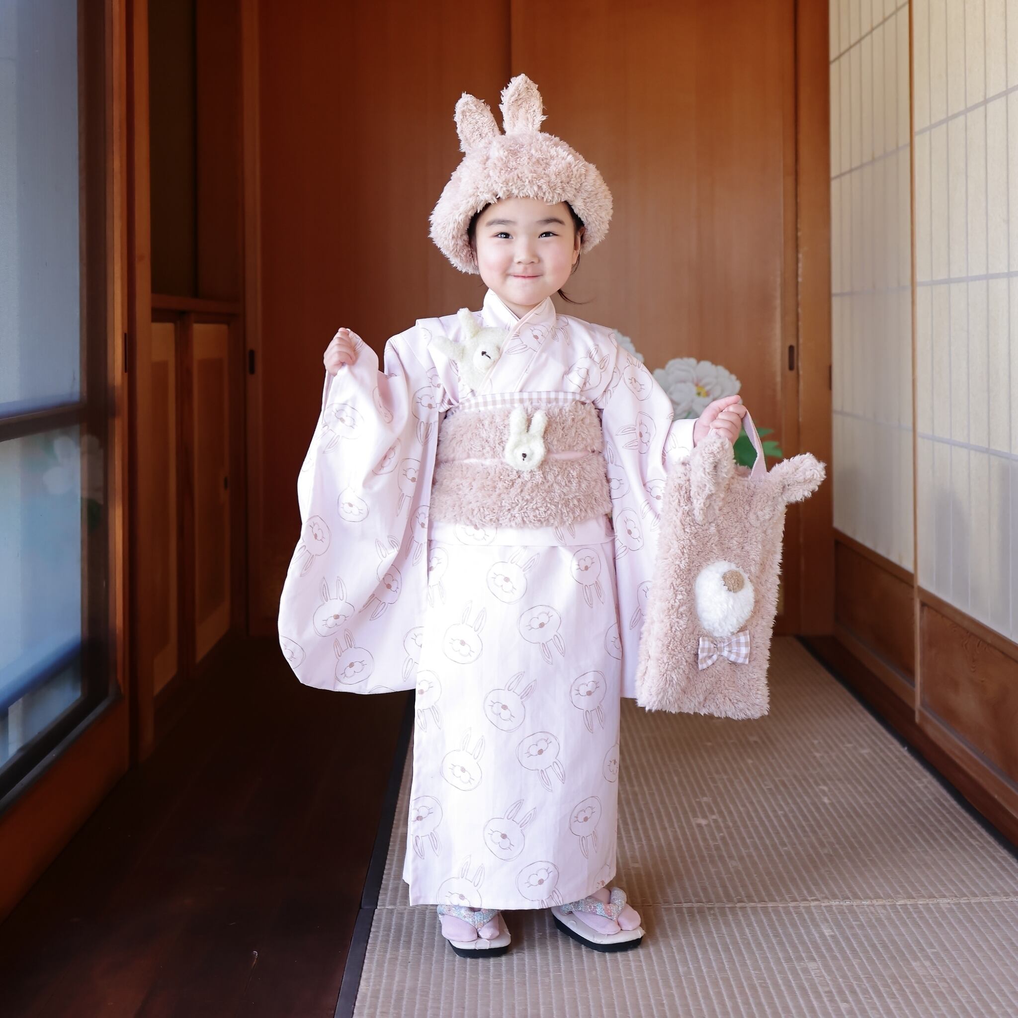 2step着物(うさぎ)の共布で出来た差し込み板をさっと入れるだけで可愛く華やかにトータルコーディネートを楽しんで頂けます。