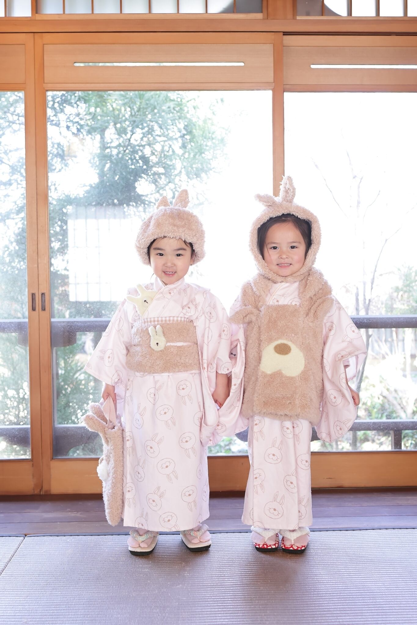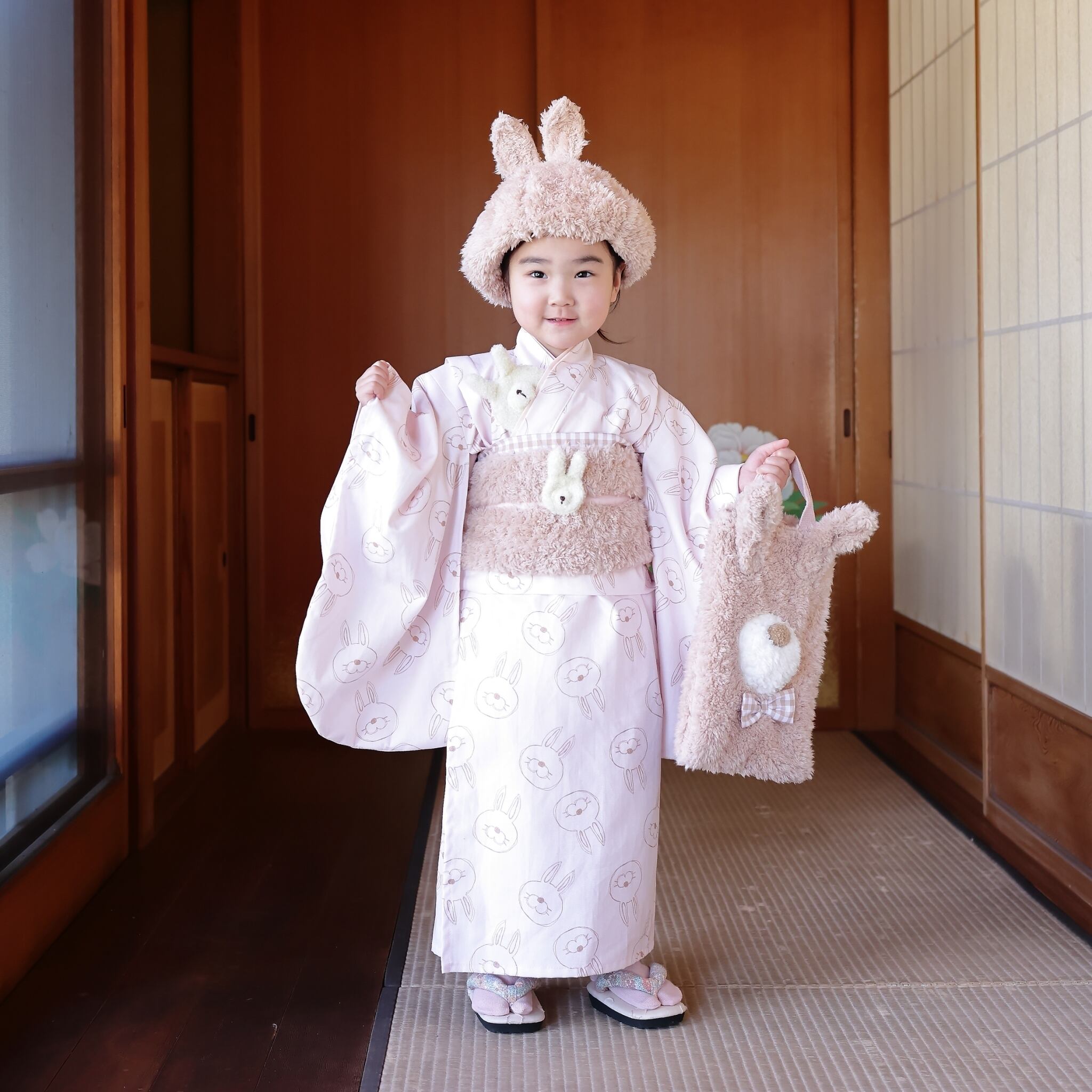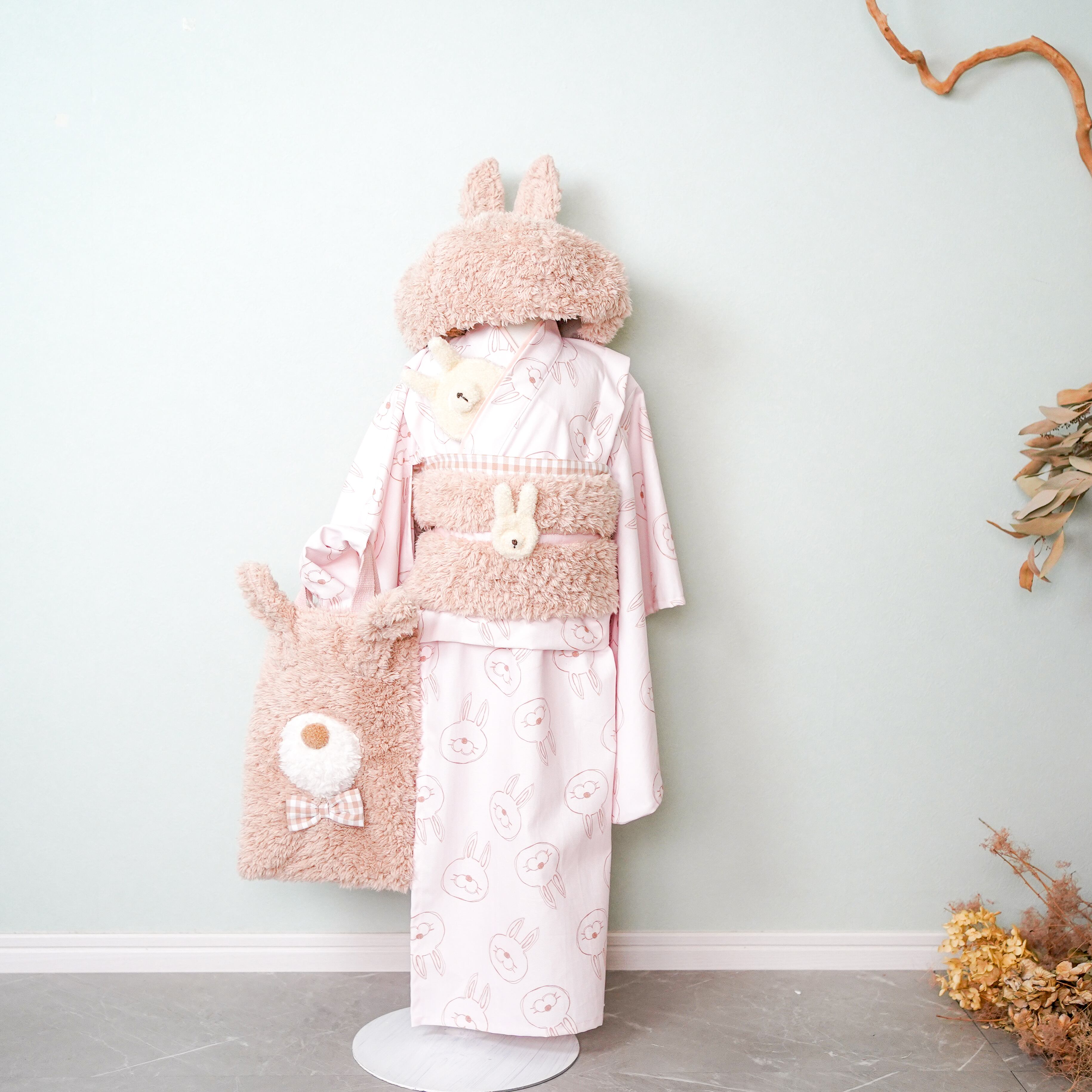 2step着物(うさぎ)の共布で出来た差し込み板をさっと入れるだけで可愛く華やかにトータルコーディネートを楽しんで頂けます。